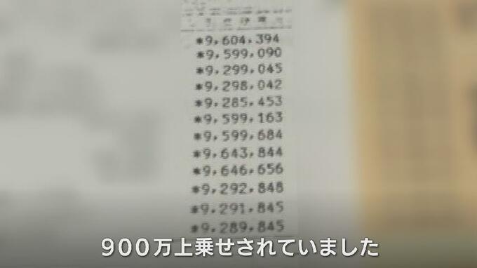 富山県の女性:「この上に9の桁が全部追加されている。きれいに。900万上乗せされてい