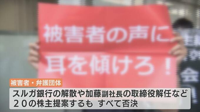 一方、被害者や弁護団体などは被害者の救済が先だと訴えていて、スルガ銀行の解散や加藤副社長の取締役解任など20の株主提案をしましたがすべて否決されました。
