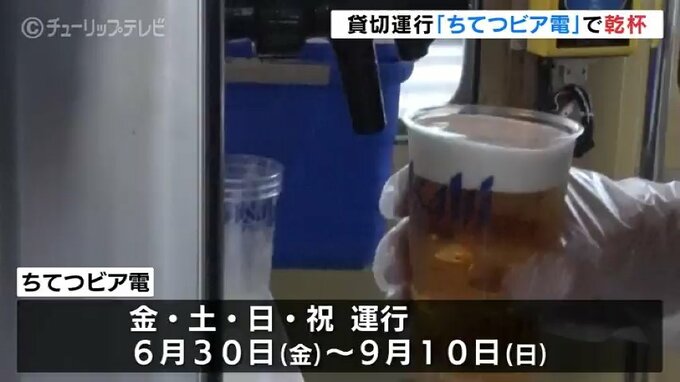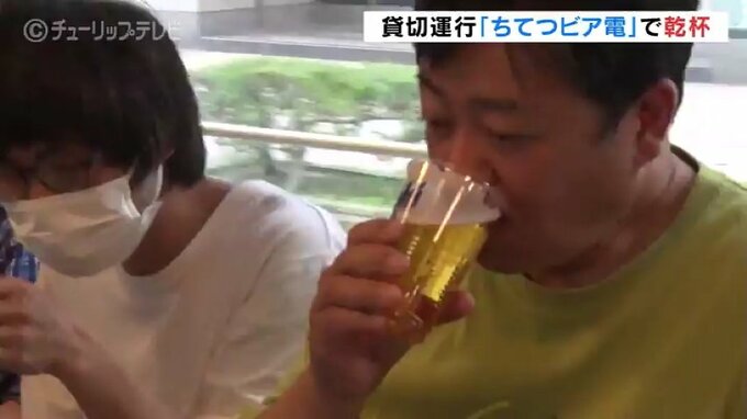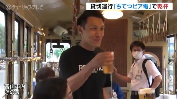 走る市内電車から街並みを眺めながら生ビールを味わう富山地方鉄道の「ちてつビア電」が30日から貸し切り運行を始めました。