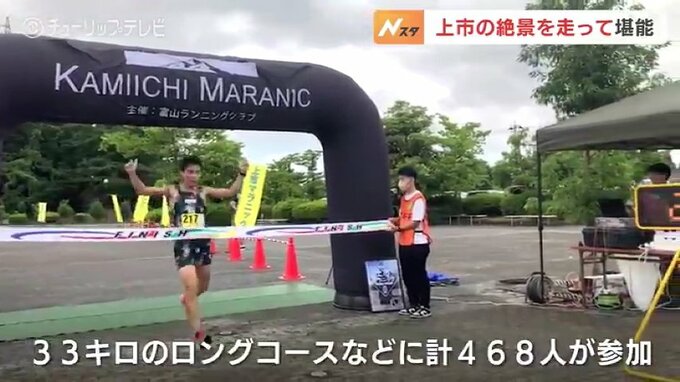 先日の大雨で土砂崩れの被害があった上市町で、トレイルランの大会が開催されました。一時は大会の開催も危ぶまれましたが、コースの一部を変更して468人が山の中を走り抜けました。