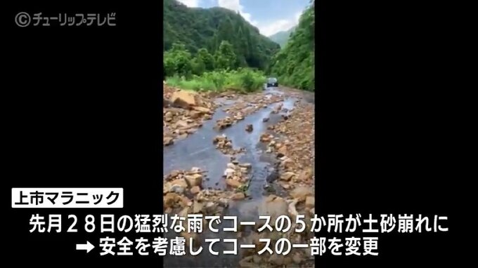 上市町では4日前の先月28日、1時間に100ミリを超える猛烈な雨が降り、大会のコースの5か所で土砂崩れが確認されました。そのため安全を考慮してコースの一部を変更、無事、開催にこぎつけました。