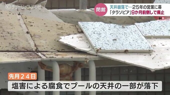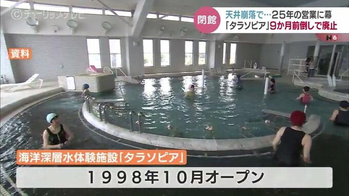 1998年10月にオープンした「タラソピア」は、施設の老朽化などを受けて今年度末での廃止が決まっていましたが、先月24日、塩害による腐食でプールの天井の一部が落下。施設は臨時休館となっています。