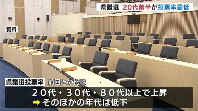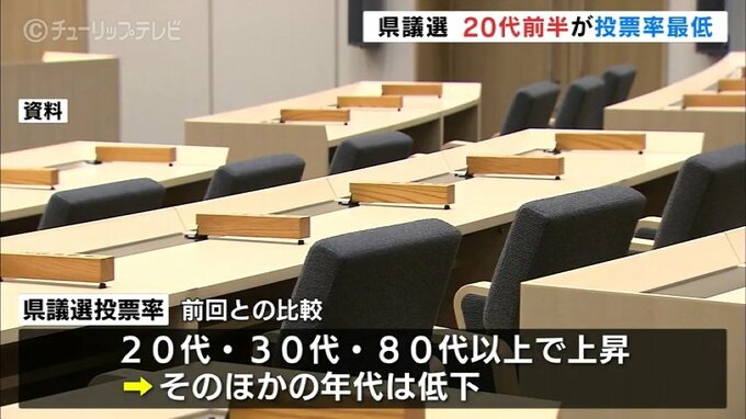 一方、前回県議選との比較では20代と30代、それに80代以上で投票率が上昇した一方、そのほかの年代は低下しています。
