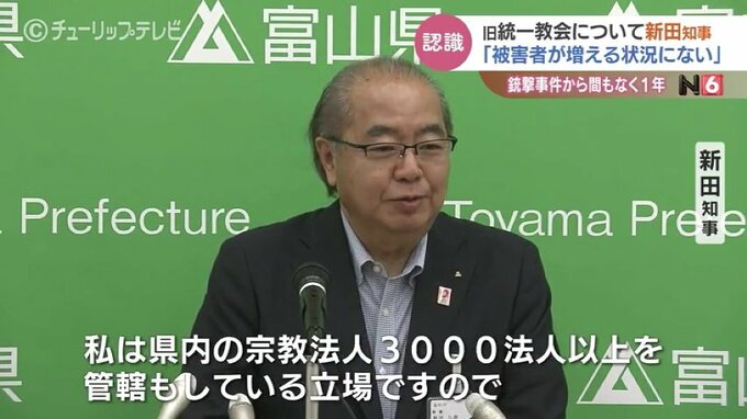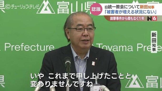 富山県 新田知事:「今、私が知る限り旧統一教会も大変人数も減っていると聞いております。毛田さんが懸念されるように新たに被害者が増え続けるというような状況には私はないと思っています」