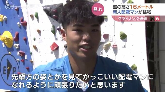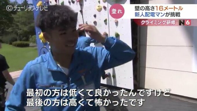 新人社員:「最初の方は低くて良かったんですけど、最後の方は高くて怖かったです。先輩方の姿とかを見て自分がかっこいい配電マンになれるように頑張りたいと思います」
