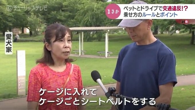 愛犬家の女性:「ケージに入れて後ろのシートにシートベルトして。ケージごとシートベルトをして…」