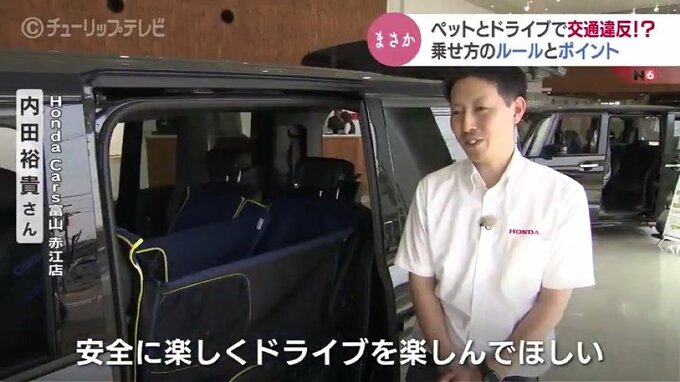 「乗っている方全て(犬も)を守るというところもある。人には、シートベルト、ワンちゃんにはリードをつけて、安全に楽しくドライブを楽しんでいただければと思います」