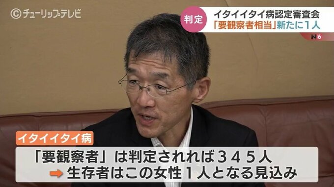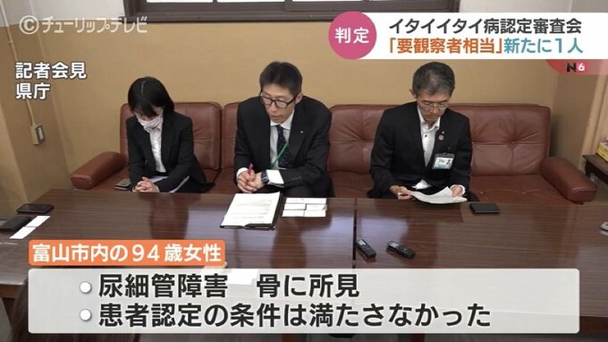 しかし被害地域の住民を対象にした検査で、富山市内に住む94歳の女性1人が、今後イタイイタイ病になる可能性が否定できない「要観察者」に相当するとされました。