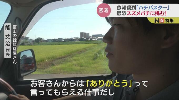 富山の蜂駆除屋さん 能丈治代表:「すごい楽しい仕事ではありますよ。それこそ命の恩人だって言ってくれる人もいれば。お客さんからはありがとうって言ってもらえる仕事だし、やりがいはすごいありますね」