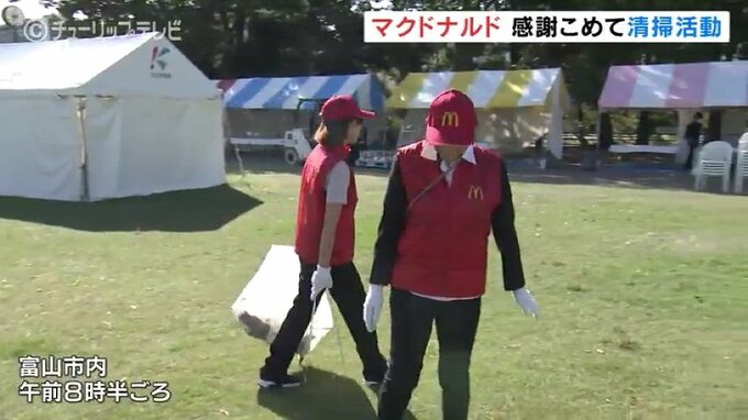 24日まで開催された「富山まつり」には、およそ7万人が集まっていて、翌日の朝、マクドナルドのスタッフとクルーが富山城址公園付近に落ちているゴミを拾っていました。