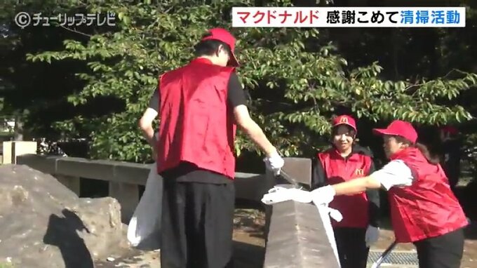 富山県内初出店から40周年を迎える大手ファストフードチェーンのマクドナルドが25日朝、地域貢献の一環として富山市内の中心部を清掃しました。