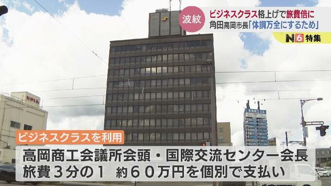 高岡市によりますと訪問団に参加する高岡商工会議所の会頭と国際交流センターの会長はビジネスクラスを利用しますが旅費の3分の1にあたるおよそ60万円を個別で支払うということです。