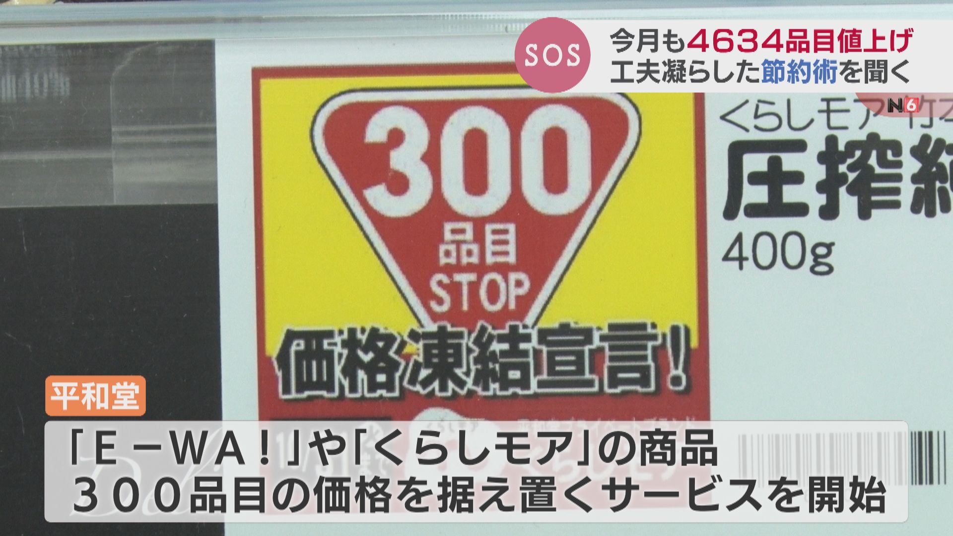 平和堂では、9月からプライベートブランドの「E―WA!」や「くらしモア」の商品を対象に300品目の価格を据え置くサービスを開始。一般的な商品よりも数十円ほど安く提供していて、特に大手メーカーの商品とコラボレーションしたものは売れ行きが好調だということです。