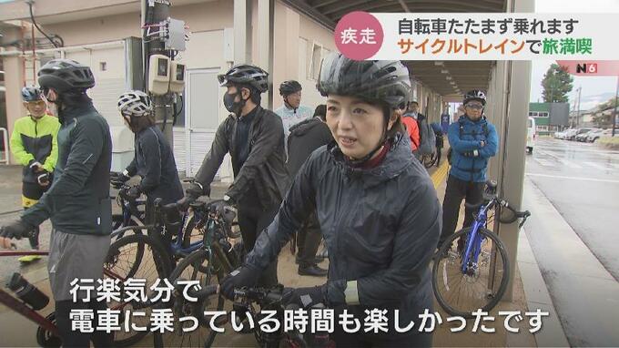 参加者:「自転車って高価なものなので倒れたら嫌なんですけどしっかり固定出来て。こんな入善の方まで来られるなんてすごく便利。行楽気分で電車に乗っている時間も楽しかったです」