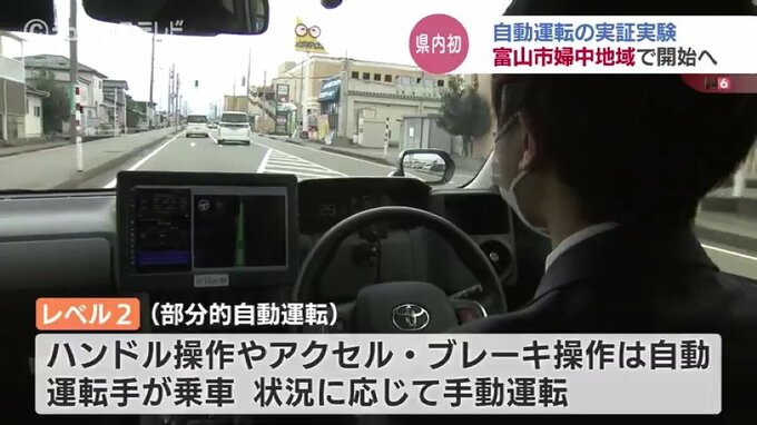 今回は、レベル2の技術を活用した部分的自動運転でハンドル操作やアクセル、ブレーキ操作は自動ですが、運転手が乗り、状況に応じて手動運転に切り替えます。