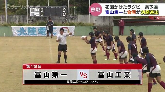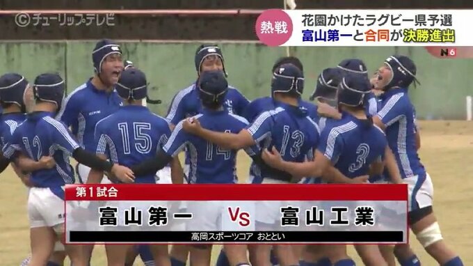 高校ラガーマンの聖地・花園出場を賭けた富山県予選が21日行われました。熱戦の末、富山第一と合同チームが決勝へとコマを進めました。合同チームが決勝に進出するのは初めてです。