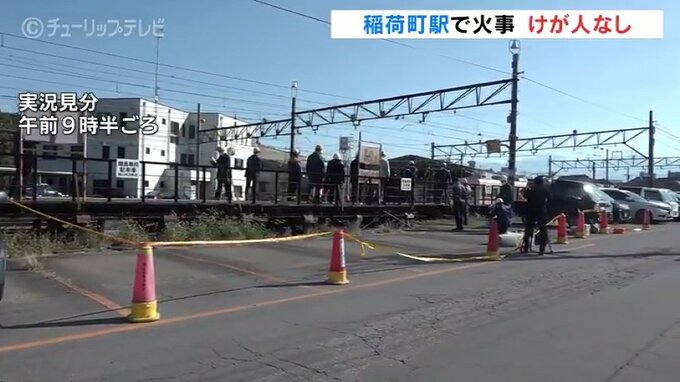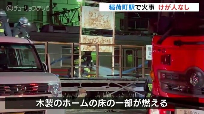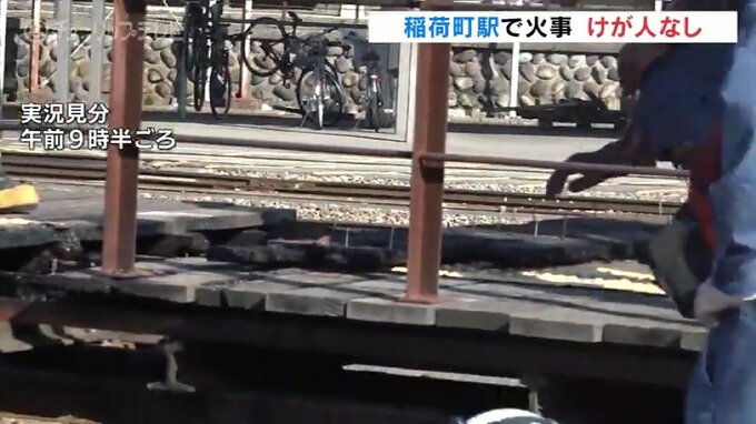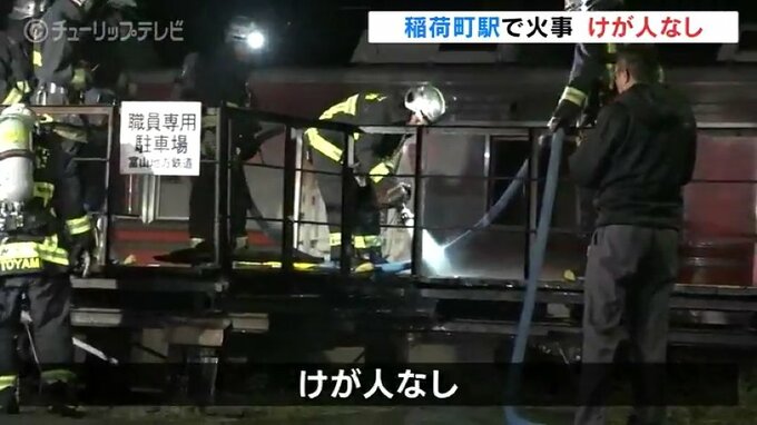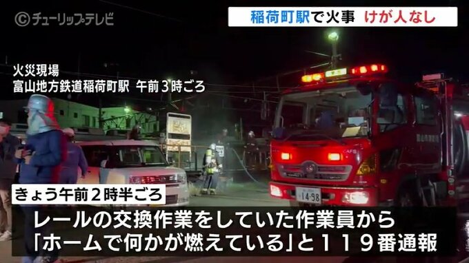 1日午前2時半ごろ、富山市稲荷町の富山地方鉄道・稲荷町駅でレールの交換作業をしていた作業員から「ホームで何かが燃えている」と消防に通報がありました。
