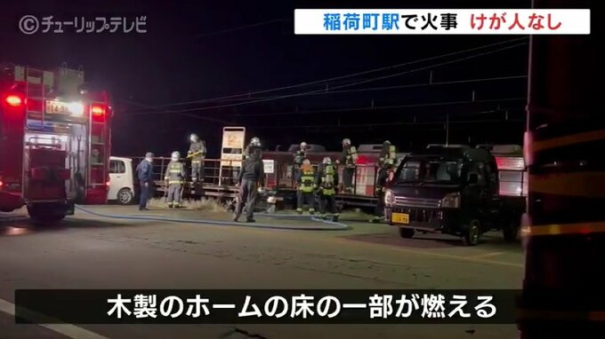 1日未明、富山市の富山地方鉄道稲荷町駅のホームの木材部分を焼く火事がありました。この火事によるけが人はいません。