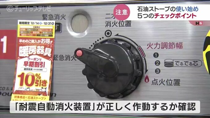 使い始めのチェックポイント!石油ストーブで事故を起こさないために ポイントは灯油、ほこりに…富山 2023年11月1日(水) 20:33 国内 ポイント③:消火装置をチェック 100満ボルト黒部店・金山さん: 「消火装置がしっかり働くかどうか確認してください。必ず振動で止まるようになってますので」 振動に反応して消火する 「耐震自動消火装置」が正しく作動するかチェックしておくと安心です。