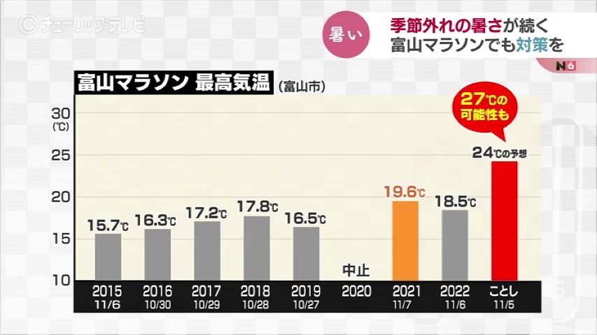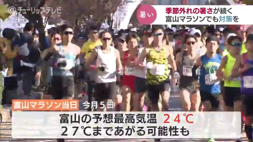 5日には富山マラソンが開催されますが富山地方気象台によりますと、日中の予想最高気温は24℃ですが、27℃まであがる可能性もあるということです。