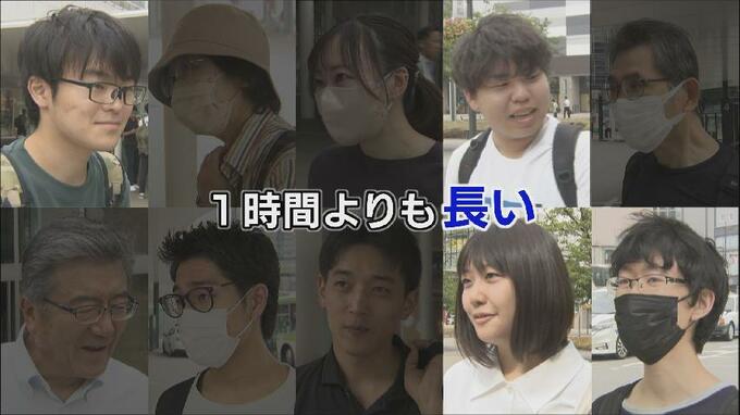 1時間よりも短い50分ほどと答えた人もいれば1時間よりも長い70分ほどと答える人もいて認識はさまざま…