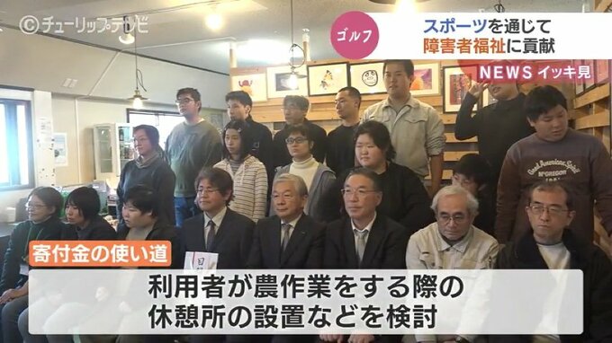 ことし10月に開催された北陸ウェルフェアゴルフトーナメントの収益金が、富山県氷見市で障害者の就労支援を行う「特定非営利活動法人ビーライフ」に贈られました。