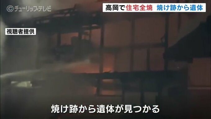 きょう未明、高岡市の住宅が全焼する火事があり、焼け跡から遺体が見つかりました。この家に住む女性と連絡が取れておらず、警察は遺体の身元の確認を急いでいます。
