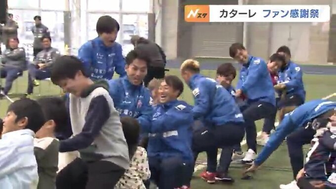 互いに「ありがとう」ファンと綱引き カターレ富山が感謝祭 2023年12月10日(日) 18:17 国内 今シーズンをリーグ3位で終えた明治安田生命J3のカターレ富山は、10日、ファン感謝祭を開き、サポーターに1年の感謝を伝えました。会場には、小田切監督をはじめ選手、コーチなどが参加し、400人を超えるサポータ…