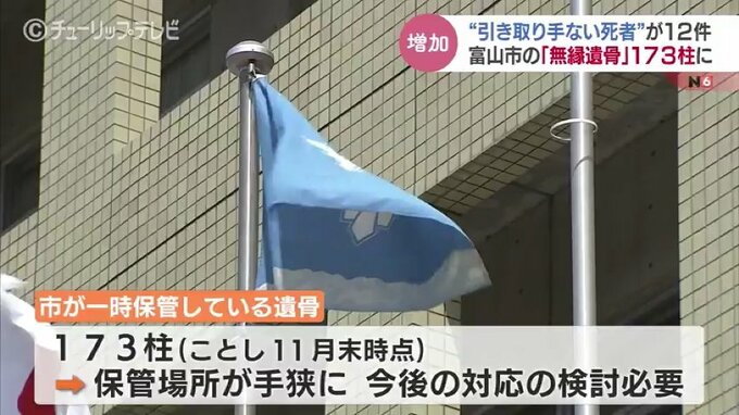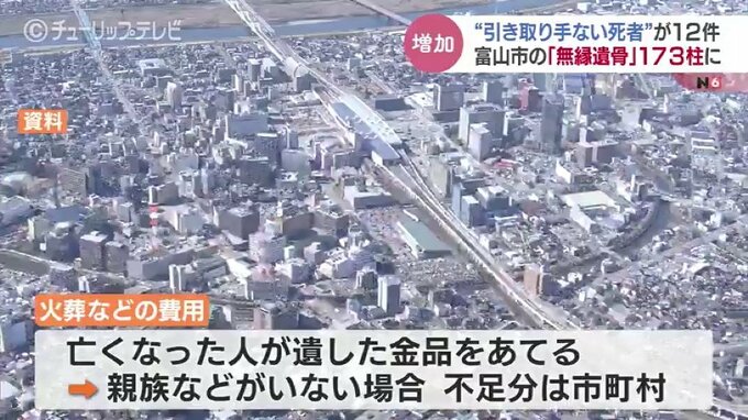 全国的に引き取り手のない、いわゆる「無縁遺骨」が増加し問題となっています。富山市でも引き取り手のない死者の数が2021年度初めて2ケタを超え、昨年度も12件と増加傾向です。