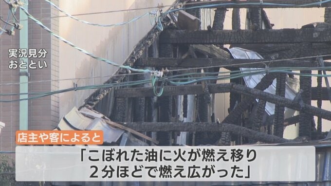 店主や当時店にいた客によりますと、こぼれた油に火が燃え移り、2分ほどで燃え広がったといいます。