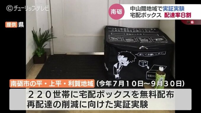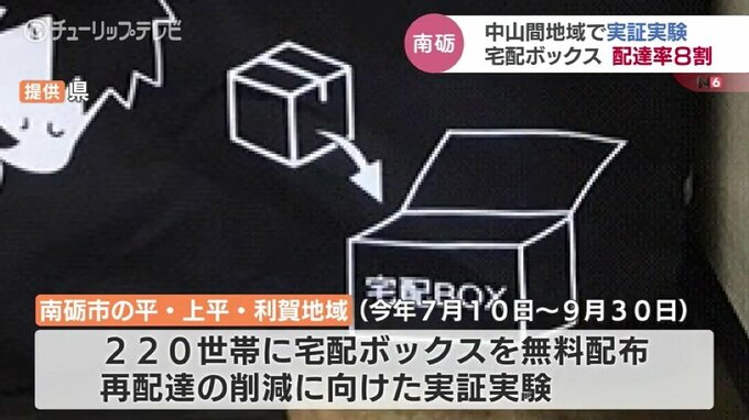 中山間地域の家庭に宅配ボックスを設置し、再配達の削減を目指す富山県の実証実験で、午前中に配達を完了した荷物の割合がおよそ8割に上ったことがわかりました。
