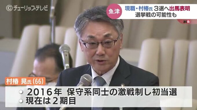 任期満了に伴い来年4月21日に行われる魚津市長選挙について、現職の村椿晃氏が3選を目指して出馬表明をしました。