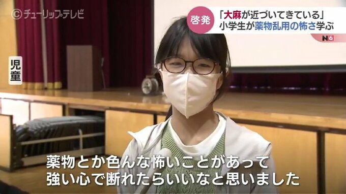 参加した児童:「(薬物は)体だけでなく人生も人の全てを壊していくといくことが心に残りました」「誘われたときに固く断れるようになりたいなと思いました」