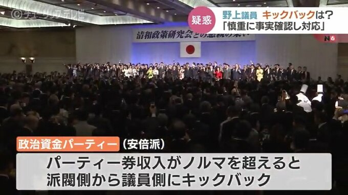 JNNの取材では安倍派から議員側にキックバックされ、記載されていない額は、過去5年間で総額5億円にのぼるとみられることがわかっています。