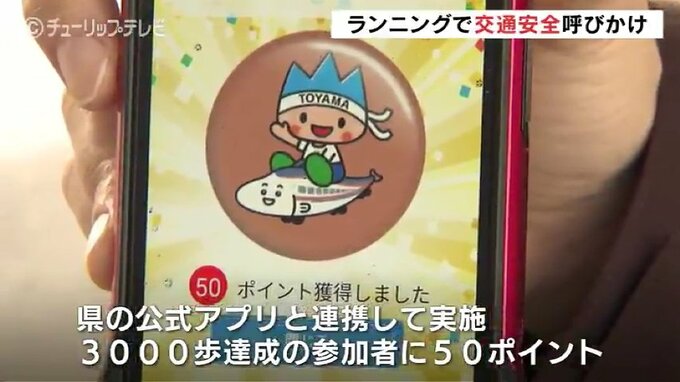 また、このイベントは県民の健康促進を目的とした県の公式スマートフォンアプリ「元気とやまかがやきウォーク」と連携して行われていて、3000歩を達成した参加者には50ポイントが付与されました。