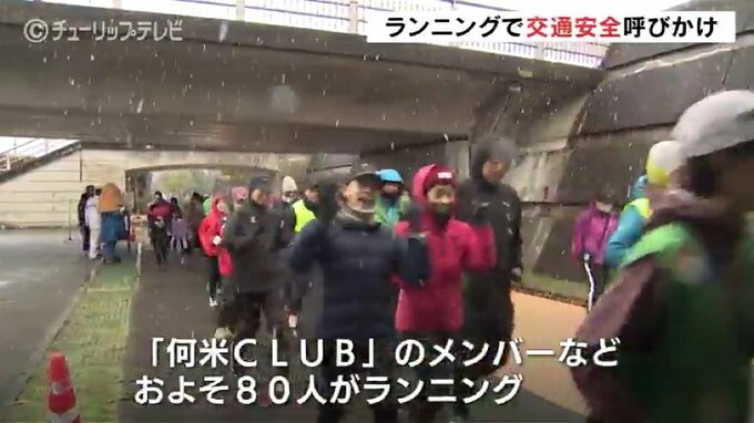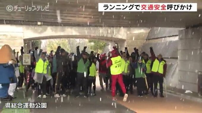 日ごろ交通安全の活動をおこなっている市民ランナーと一緒に走りながら、交通安全を呼びかけるイベントが富山市でおこなわれました。