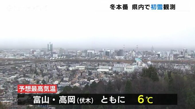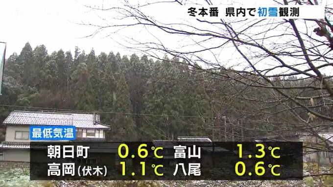 北陸地方の上空およそ5500メートルには、氷点下30℃以下の強い寒気が流れ込んでいて、富山地方気象台は、けさ早く県内で初雪を観測したと発表しました。