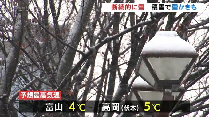 日中の最高気温は、富山で4℃、高岡市の伏木で5℃と上がらず、真冬のような1日となりそうです。