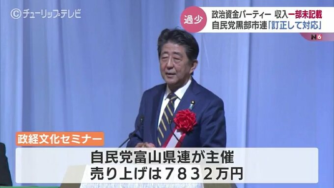 2022年5月、自民党富山県連が開いた政治資金パーティー「政教文化セミナー」は7832万円の売り上げがありました。