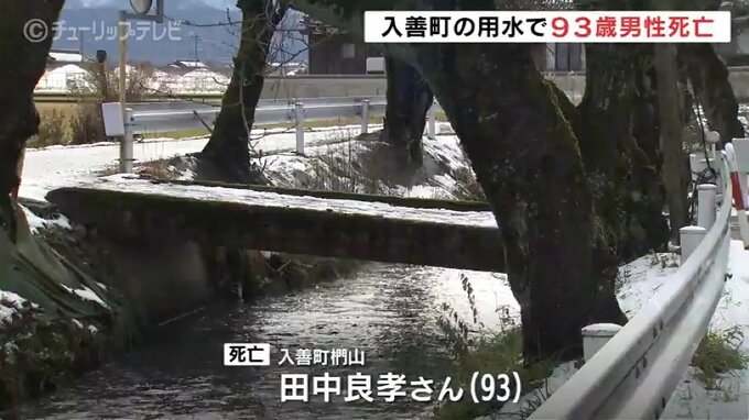 警察によりますと、18日午後5時50分ごろ、入善町椚山の無職・田中良孝さん(93)が自宅近くの用水路に浮いているのを親族がみつけ、警察に通報しました。田中さんは搬送先の病院で死亡が確認されました。