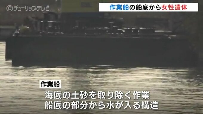 女性の遺体が見つかった作業船は、海底の土砂を取り除く作業をする船で、船底の部分から水が入る構造です。遺体で見つかった女性は年齢不詳で、身長およそ150センチメートルで中肉、黒のズボンと黒色の靴下を着用していました。目立った外傷はなかったということです。警察が身元の特定を進めていて、19日以降、司法解剖して詳しい死因を調べることにしています。