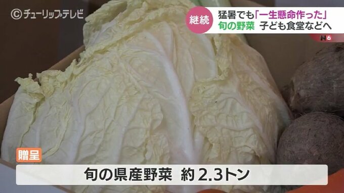 子ども食堂などに贈られるのは、大根や白菜などの旬の富山県産野菜およそ2.3トンです。これは、富山県野菜出荷組合協議会が32年前から毎年行っているもので、ことしは5つの障害者福祉施設と11の子ども食堂に贈られます。