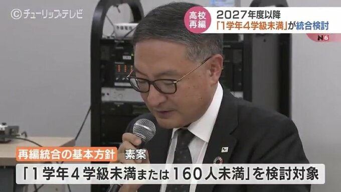 2027年度以降の県立高校再編をめぐって富山県県教育委員会は、「1学年4学級未満」の学校を再編統合の検討対象とする基本方針を示しました。