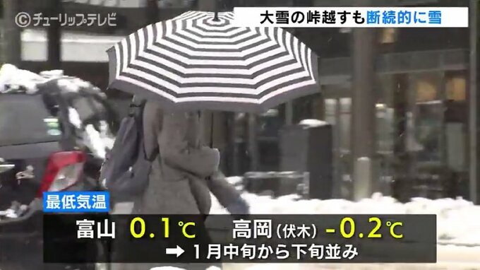 富山地方気象台は引き続き雪による交通障害などに注意・警戒を呼びかけています。
