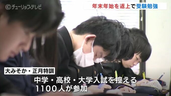この特訓は気が緩みがちな年末年始に、受験生たちの最後の追い込みを後押ししようと毎年実施されているもので、きょうは中学・高校・大学入試を控えた1100人が参加。