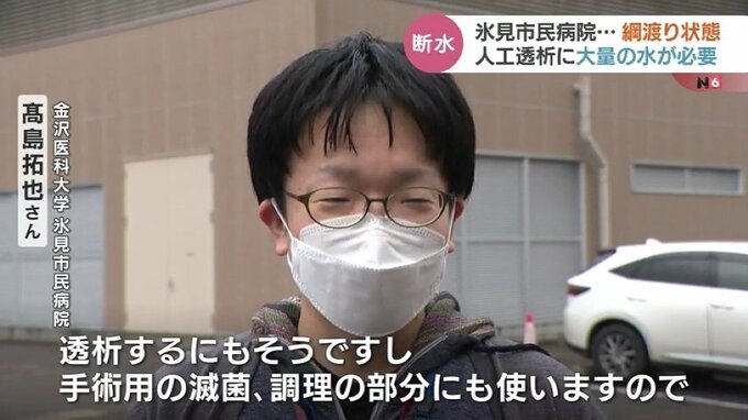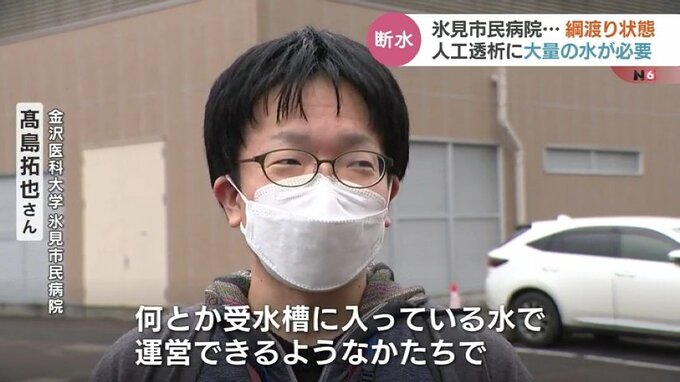 金沢医科大学氷見市民病院 高島拓也さん:「水の使用量もだいぶ絞っている状況。何とか受水槽に入っている水で運営できるような形で何とかしのいでいるところです」