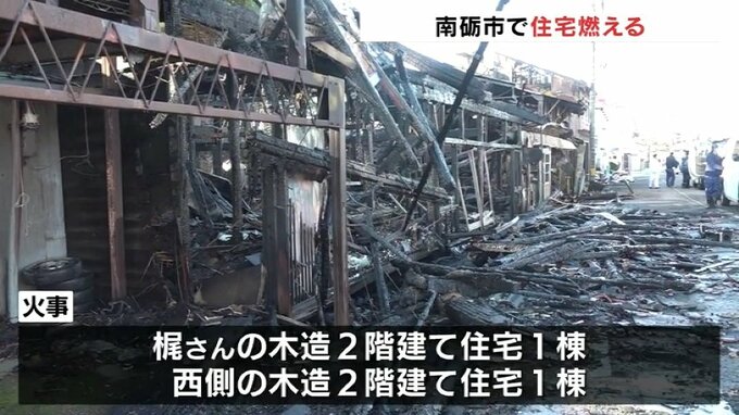 梶さんの住宅一棟と西側にある木造2階建ての住宅一棟を焼きました。この火事で梶さんと同居する70代の妻が避難する際、2階から飛び降り腰の骨などを折る重傷です。