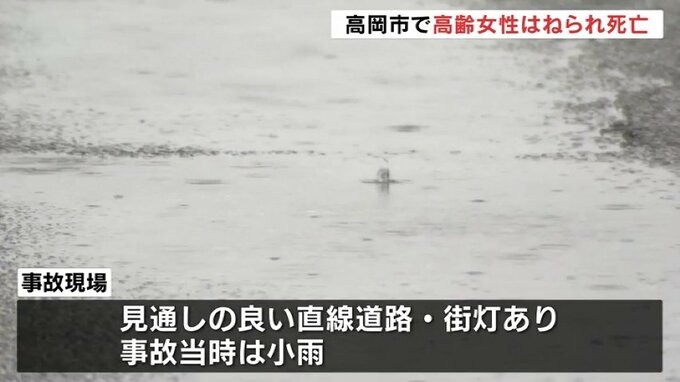 9日夕方、富山県高岡市の県道で80歳の女性が普通乗用車にはねられ、搬送先の病院で死亡しました。
