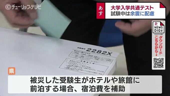 ことしは被災した受験生がホテルや旅館に前泊する場合、県が宿泊費を補助するほか、余震に配慮し、試験中に大きな地震が起きた際は試験を一時中断します。