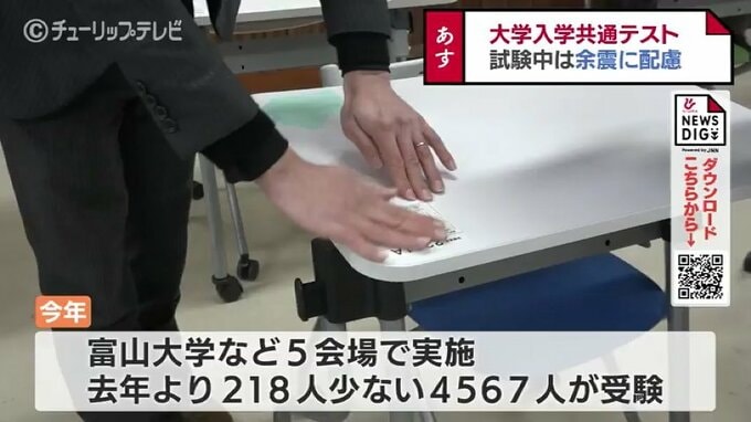 13日から大学入学共通テストが始まります。富山県内では富山大学など5つの会場で行われ、去年より218人少ない4567人が受験します。